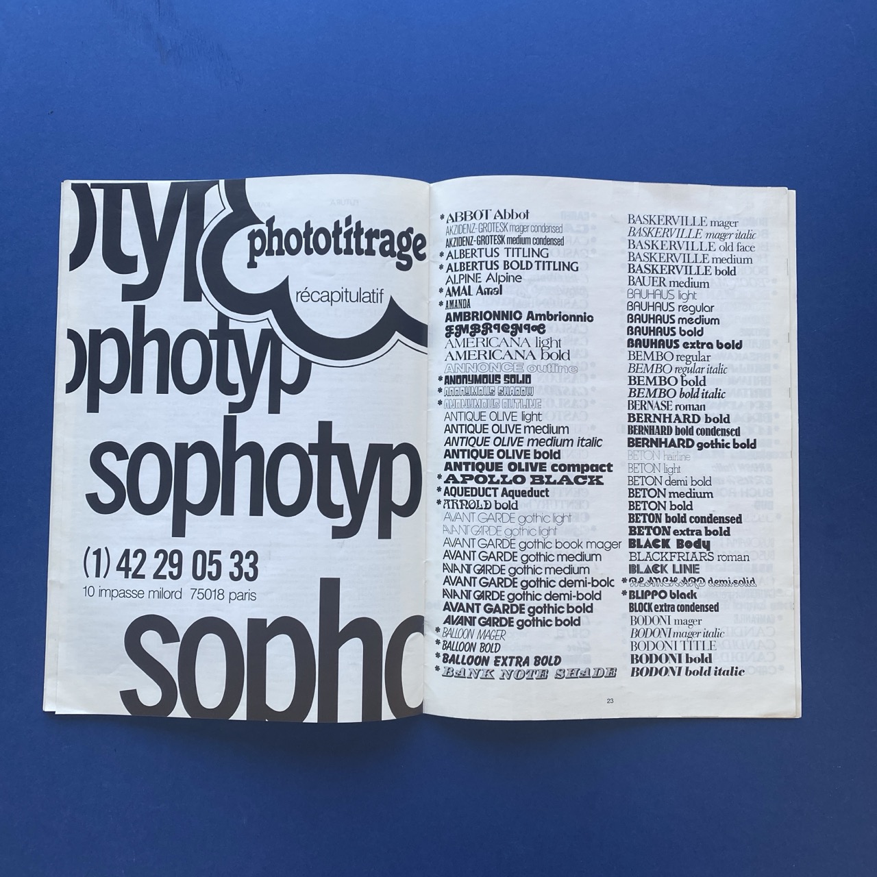 Sophotyp, Référence 8 & Photocomposition évolutive, Paris, 1980s, 24 x 34 x 5 cm, 895 pp. Set of 2 volumes. Catalogue in good condition; the cover is in rough condition.