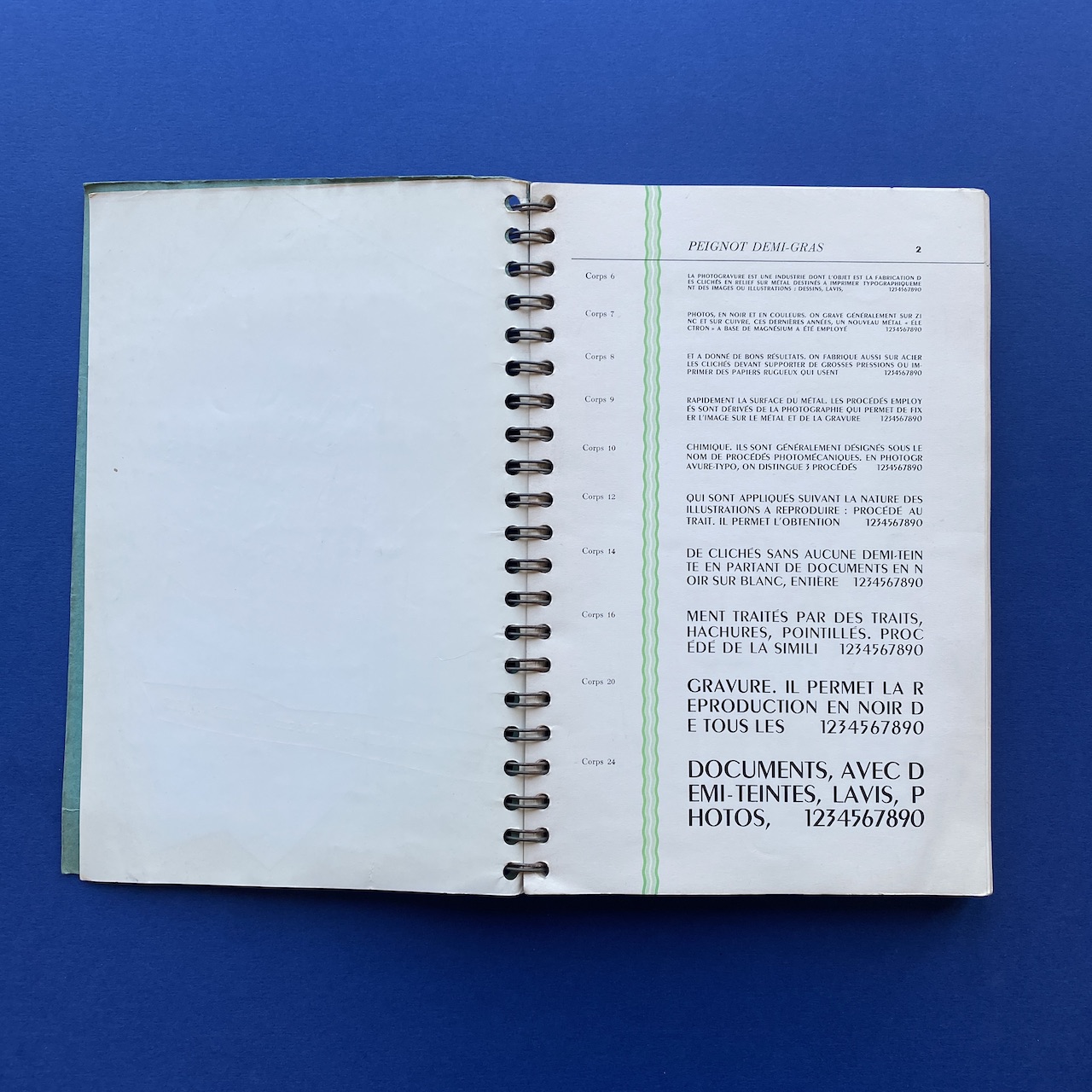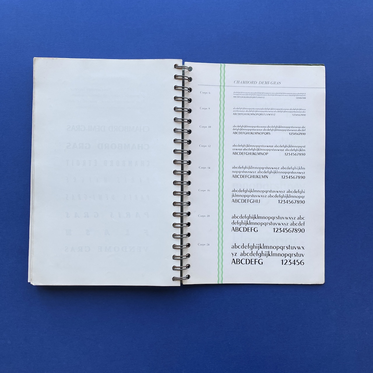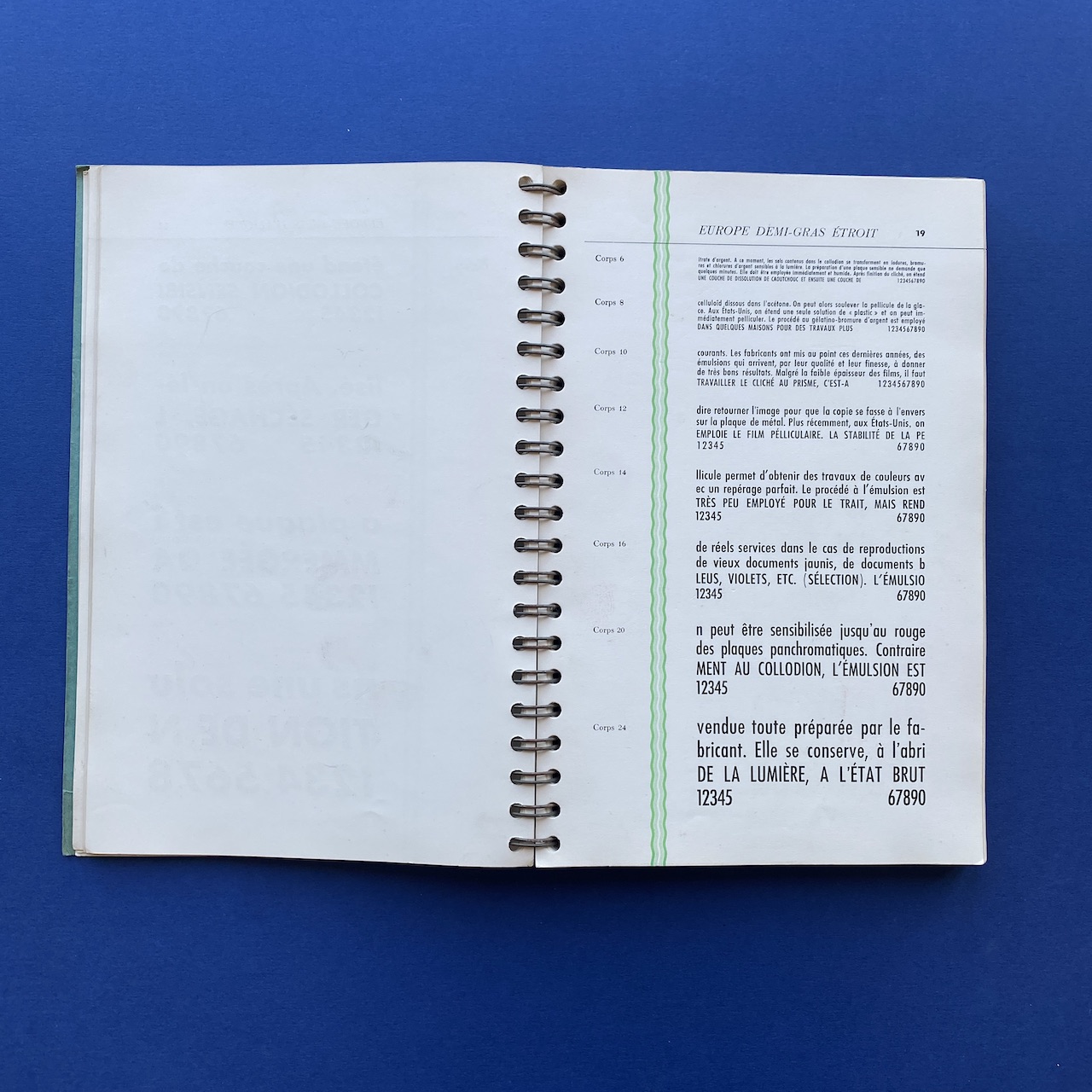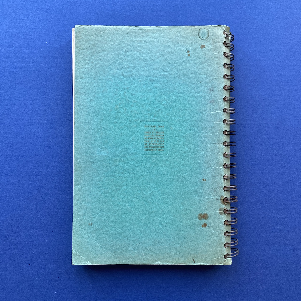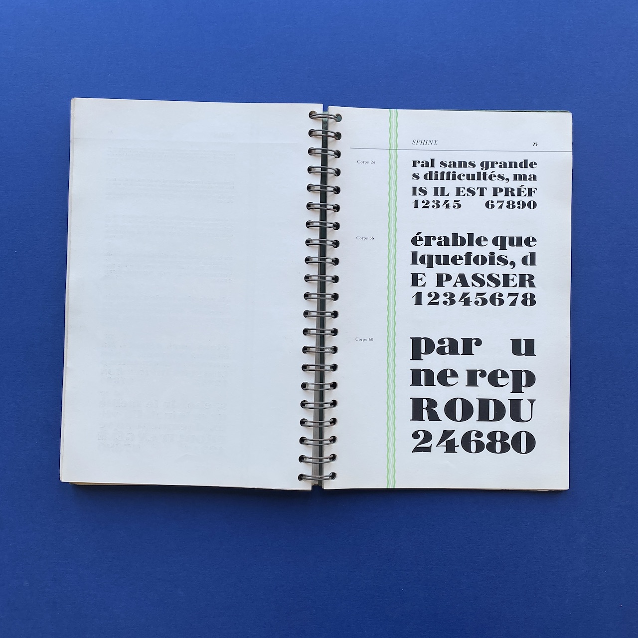 Spécimen de caractères, Bussière et Nouel, 1950s, Paris, 18,9 x 27,4 cm. Beautiful catalogue including: Peignot, Europe, Gill, Noble, Kabel, Banjo, Antique, Ramses… Three letters cut-out. Cover a bit yellowed. Inscription on the cover.