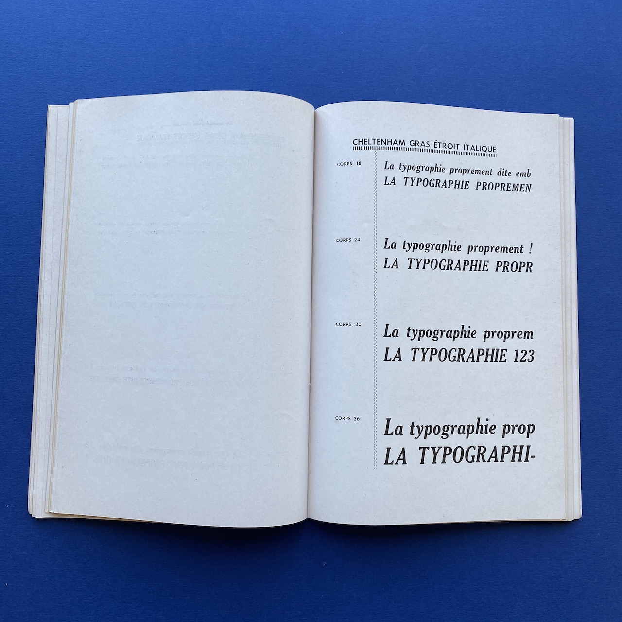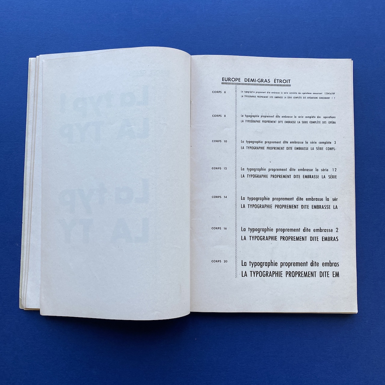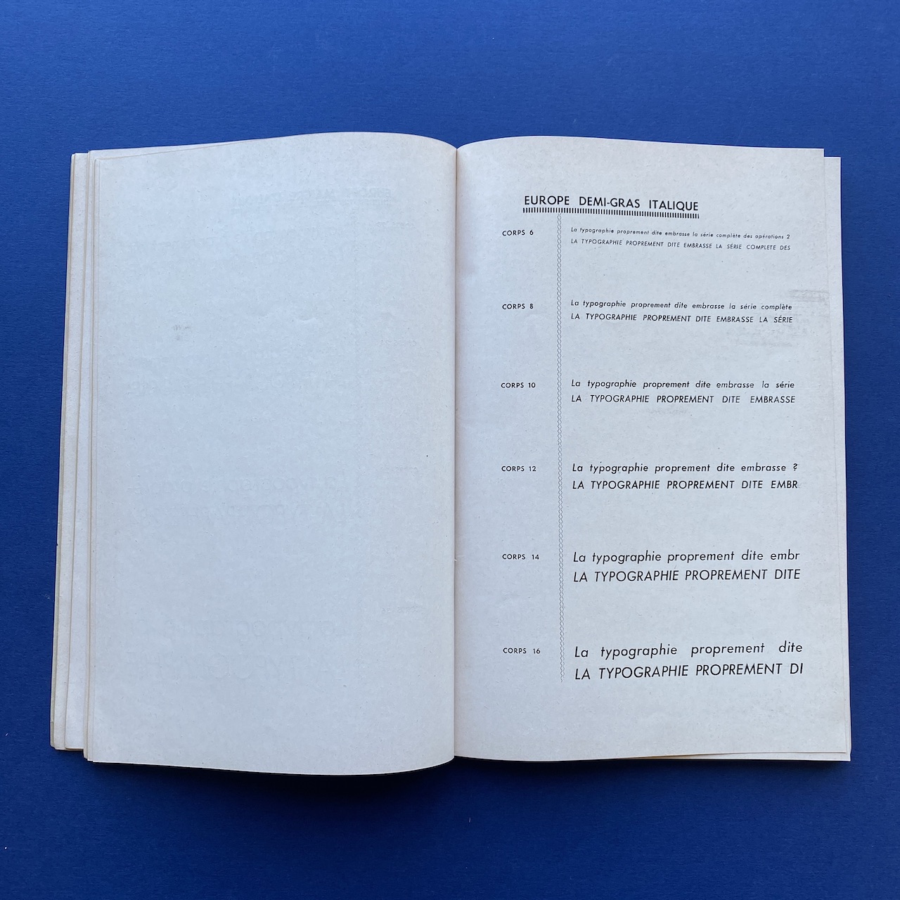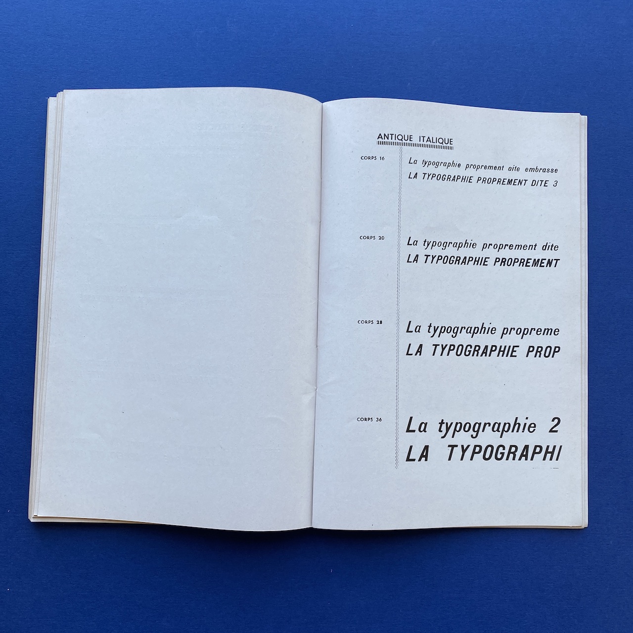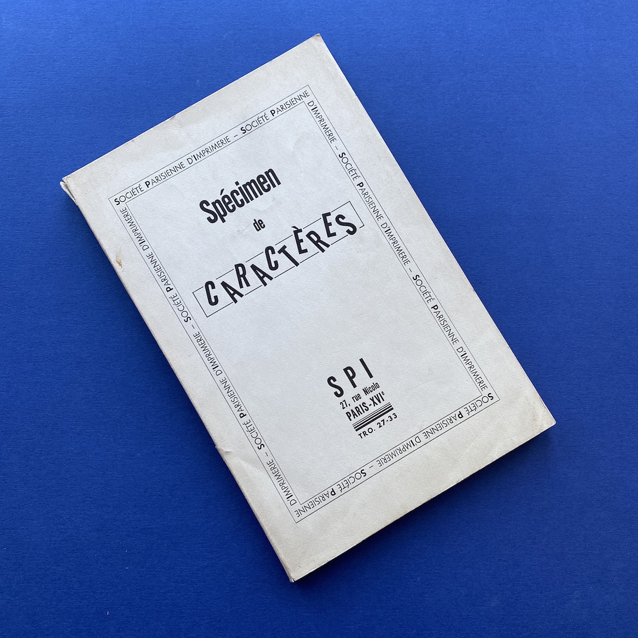 Spécimen de caractères, SPI société parisienne d’imprimerie, no date, Paris, 15,5 x 24 cm, not paginated. The interior is in good condition but the spine shows some signs of use. The binding is a bit fragile.