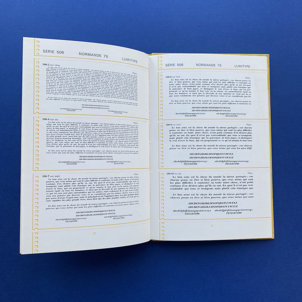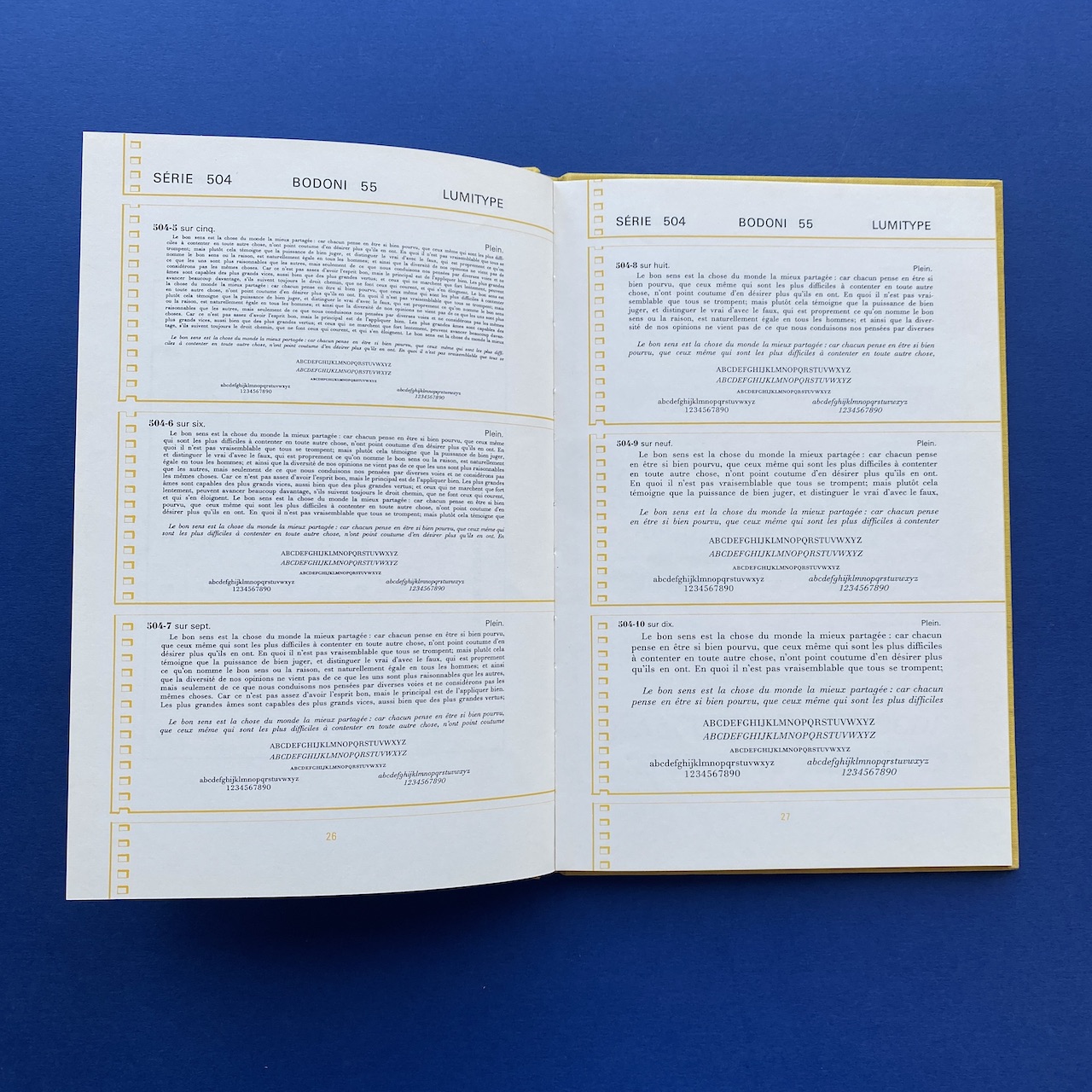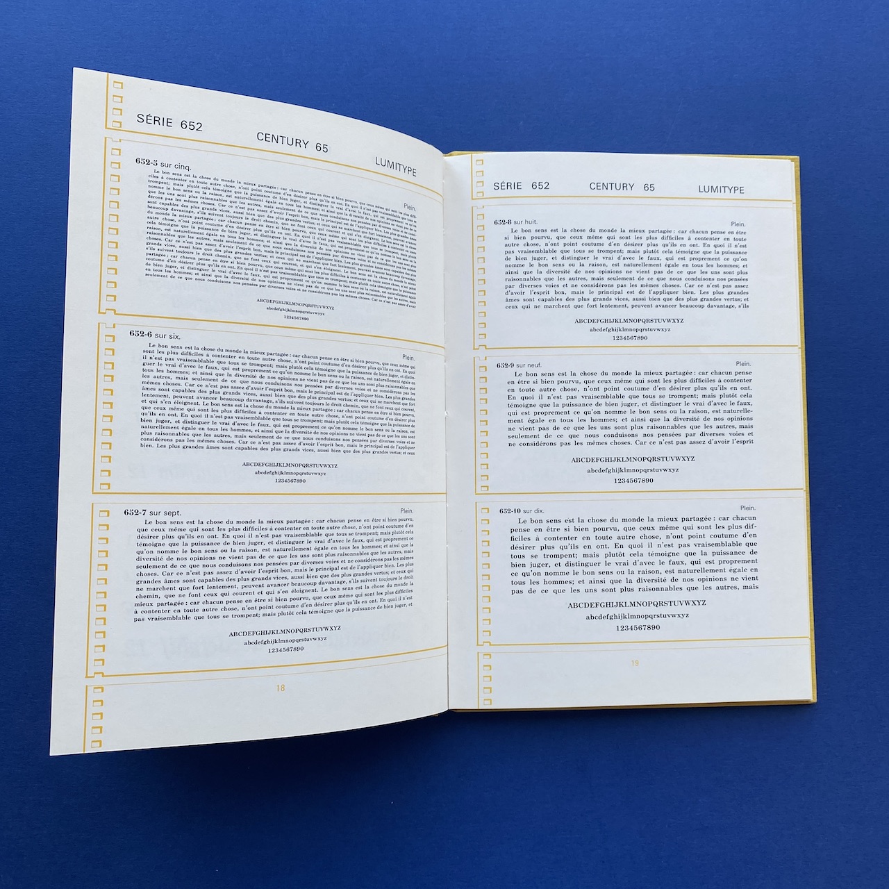 Specimen Lumitype, Photocomposition, Brodard & Taupin, Paris, 16,5 x 24,5 cm, 67 pp. Rigid covers in yellow fabric.