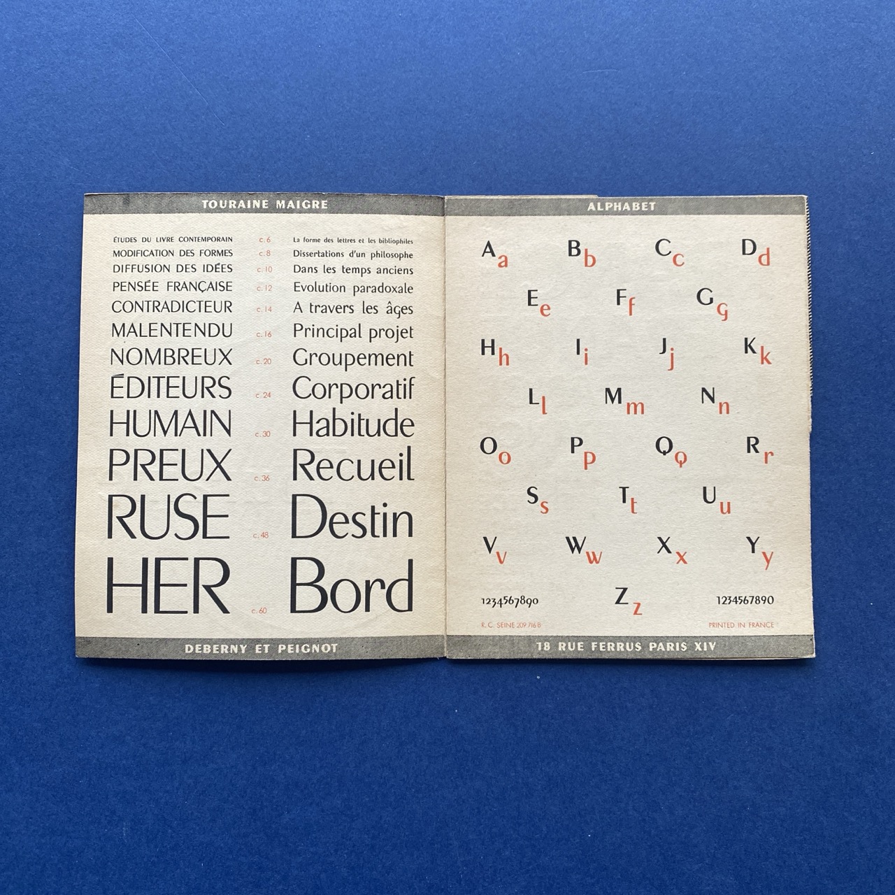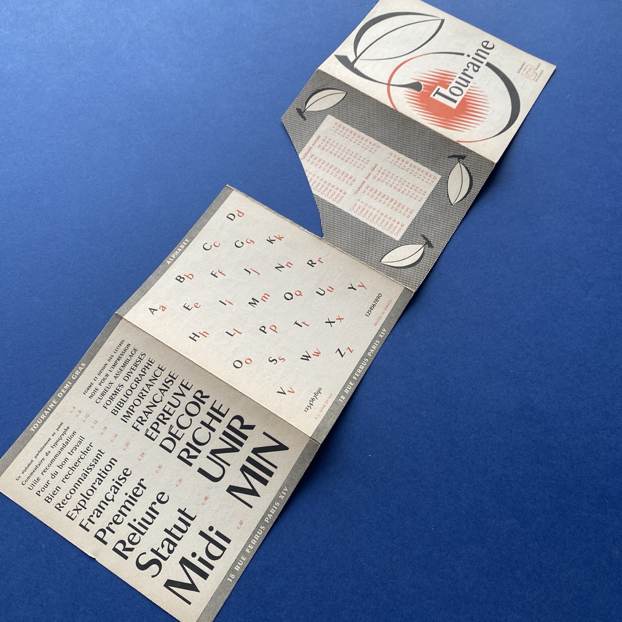 Touraine, Paris, Deberny & Peignot, 1950s, 11 x 14 cm.