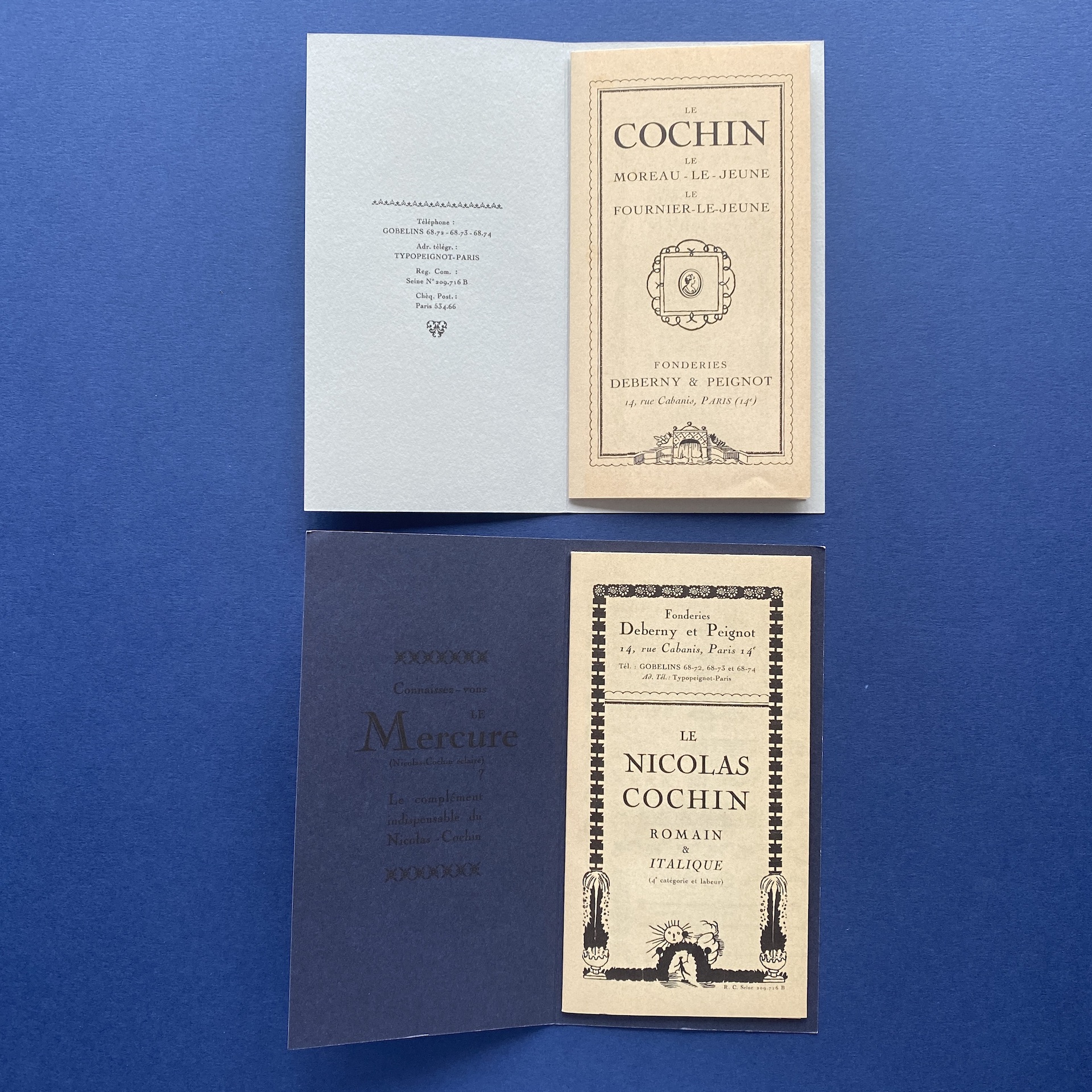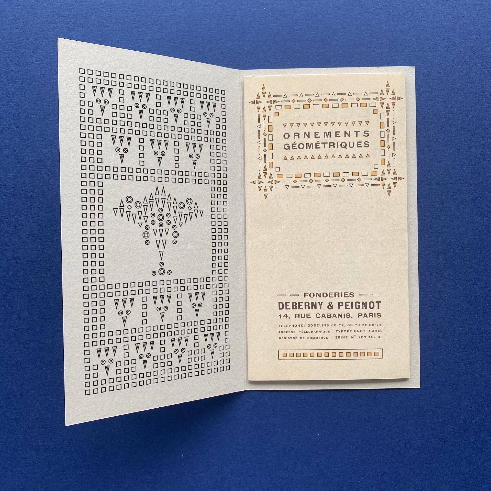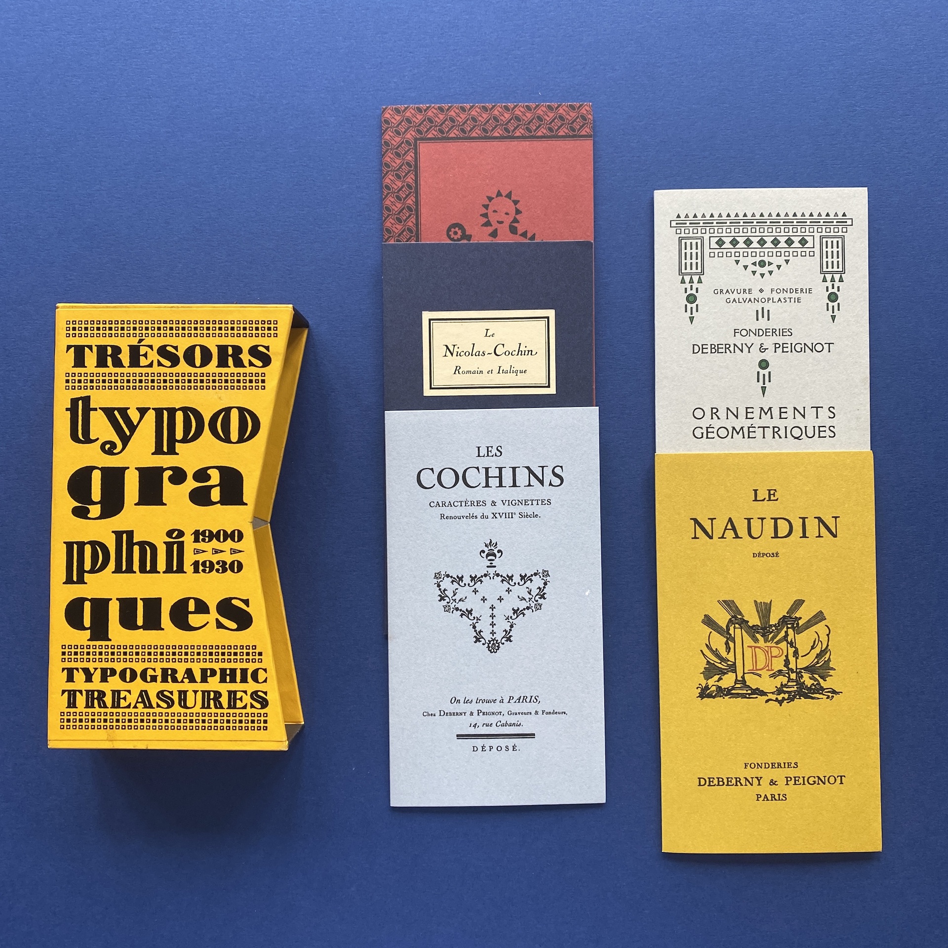 Trésors typographiques, 1900-1930, Paris, Éditions Bibliomane, 2019, 9 x 16,5 cm. 14 facsimiles of booklets made by Deberny et Peignot between 1900 and 1930.