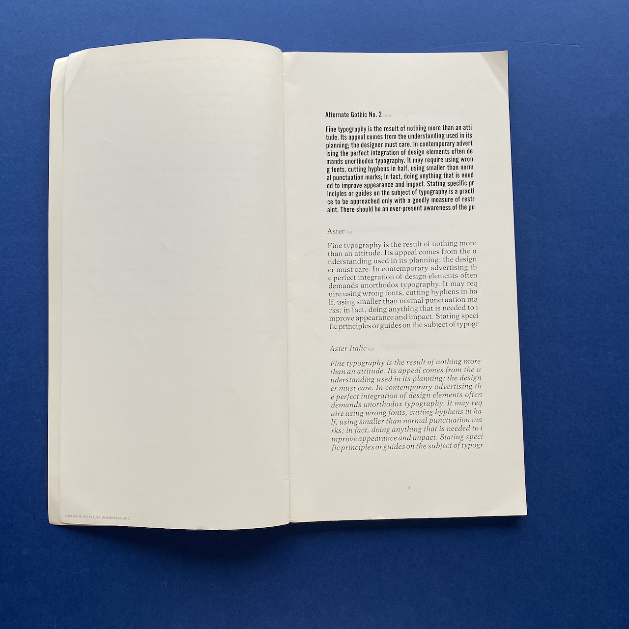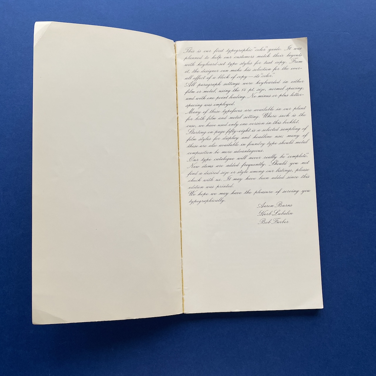 [Typographic Color Guide], New York, Lubalin Burns & Co Inc, 15,2 x 30,5 cm, Designed by Aaron Burns & Bob Farber, 1971, 120 pp.