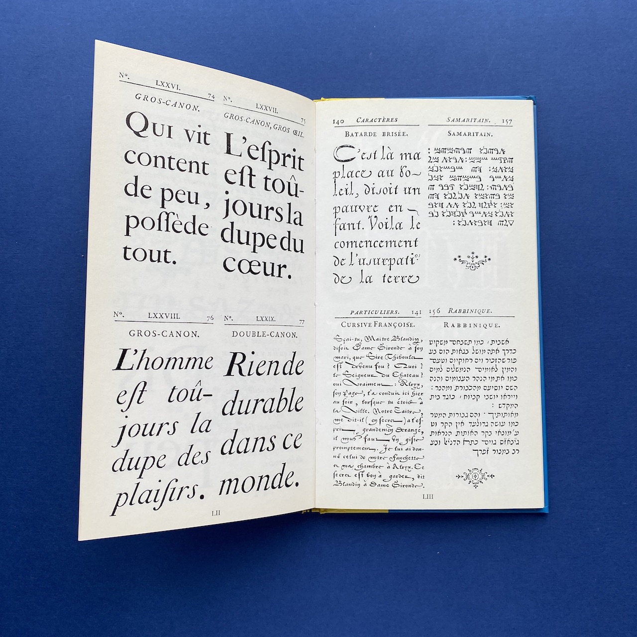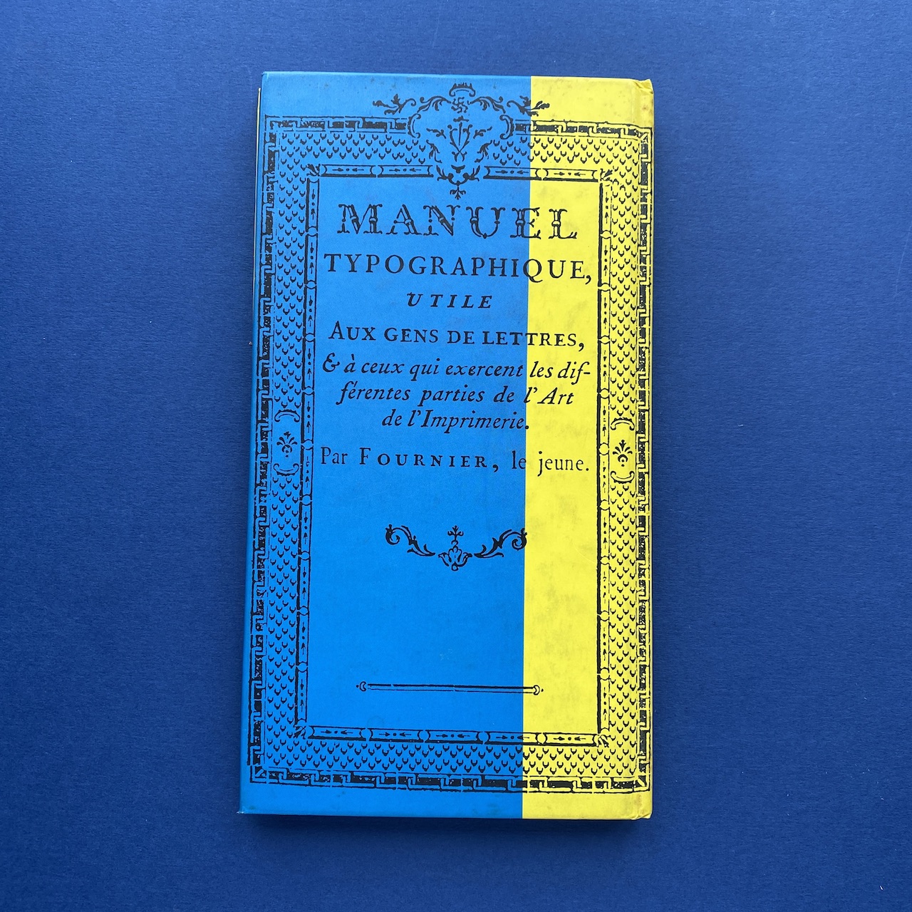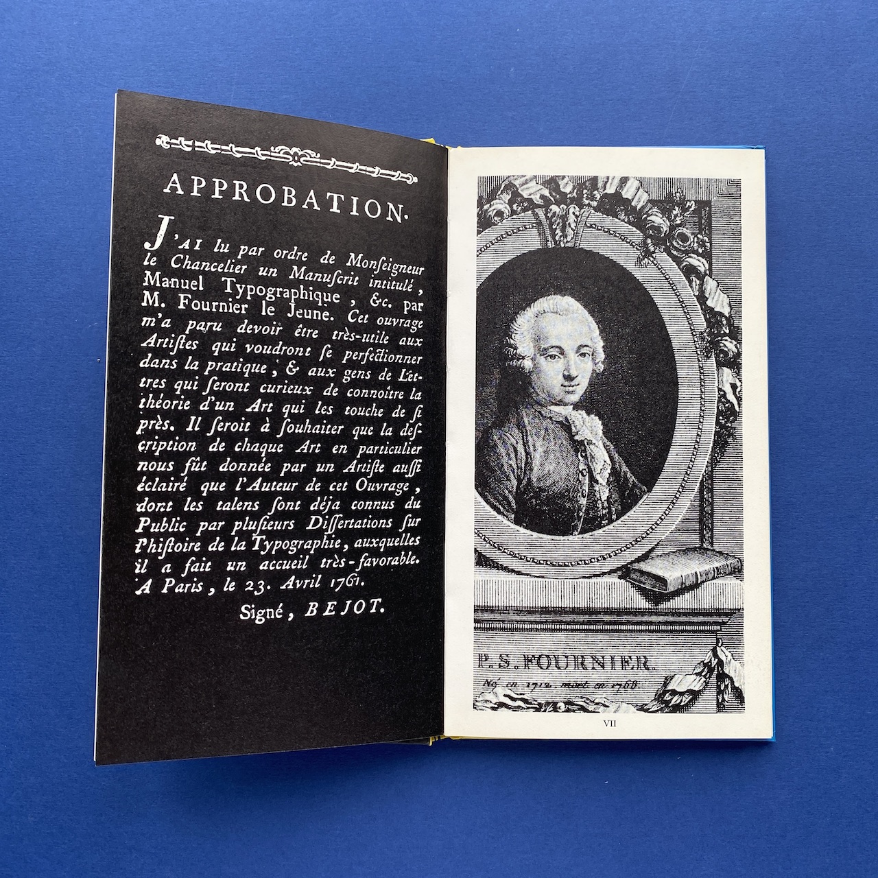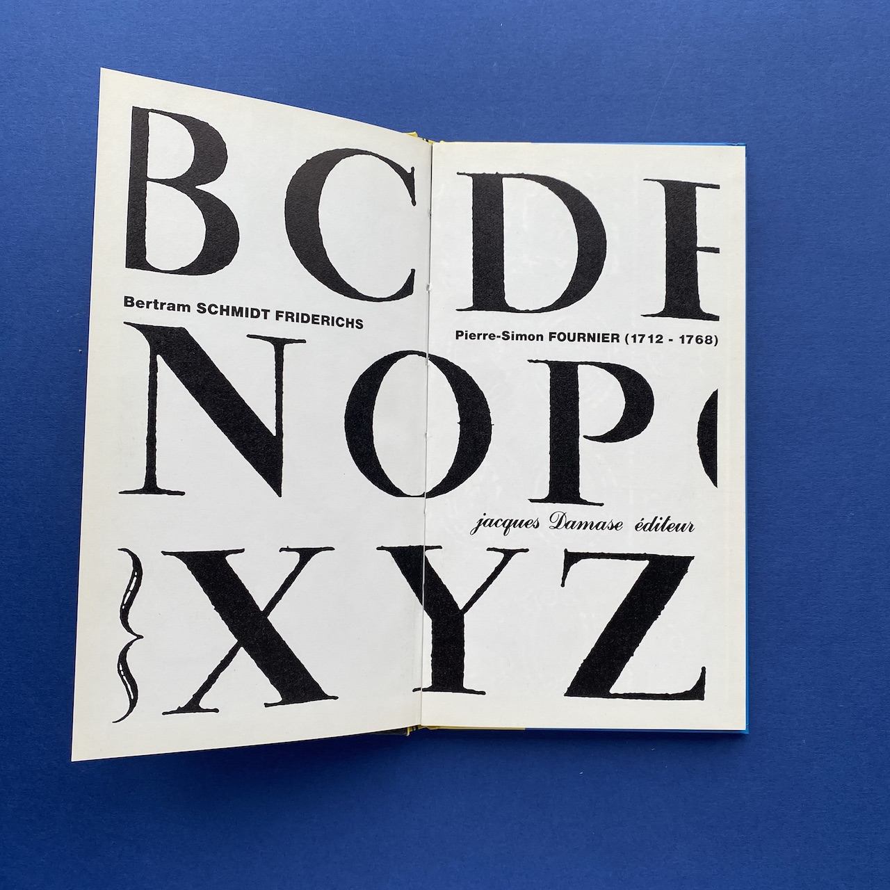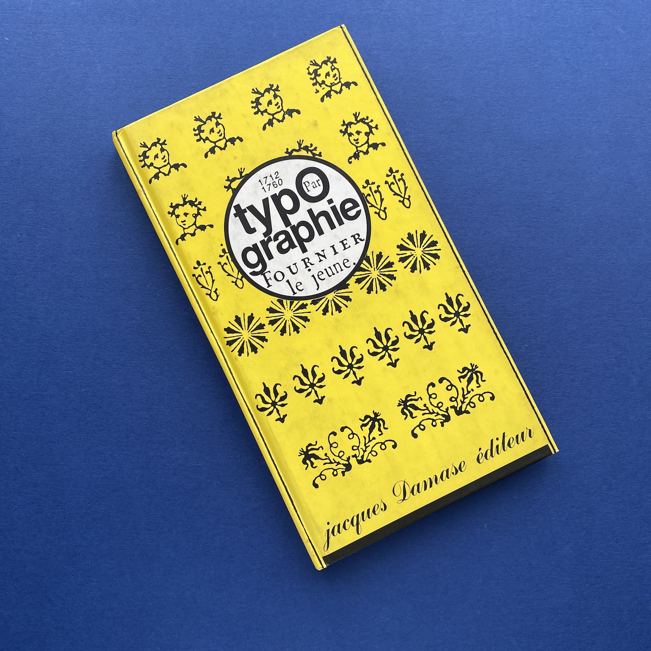Typographie par Fournier le jeune, 1712-1760, directed by Simon, Jacques Damase Ed., Paris, 1991, 12,5 x 22,7 cm, 92 pp. The front and back cover show some minor signs of use.
