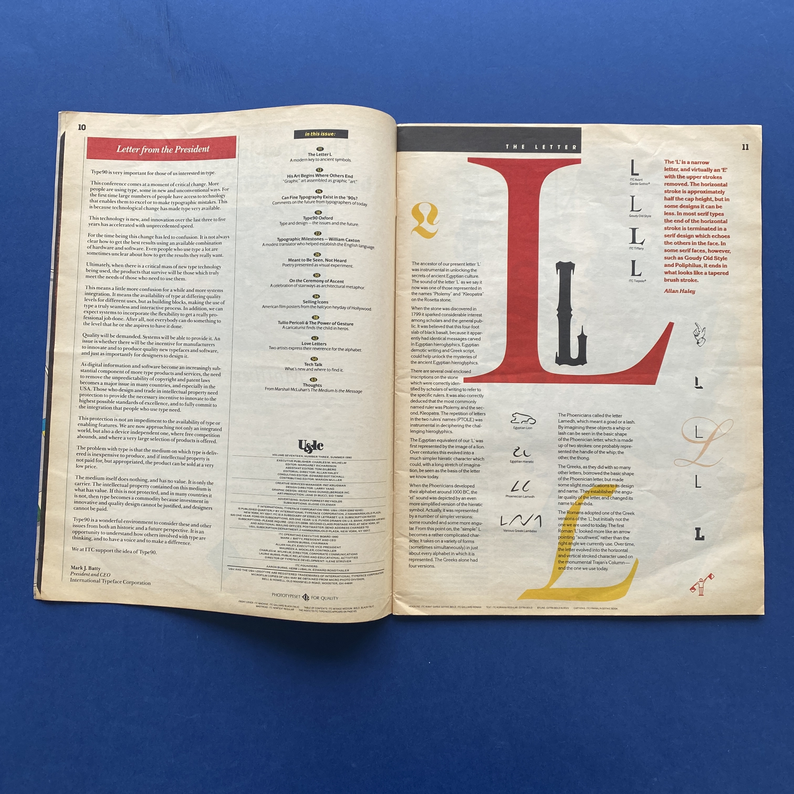 Upper & Lower Case, U&lc, n°3, vol. 17, The international journal of type and graphic design, New York, ITC Corporation, Summer 1990, 27,5 x 37,5 cm, 72 pp.