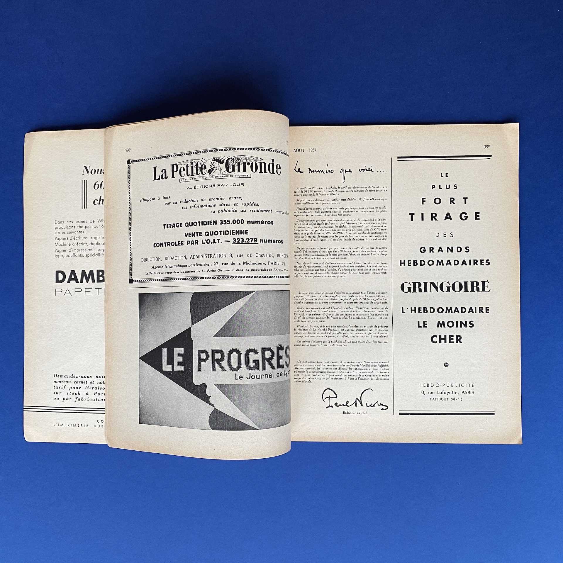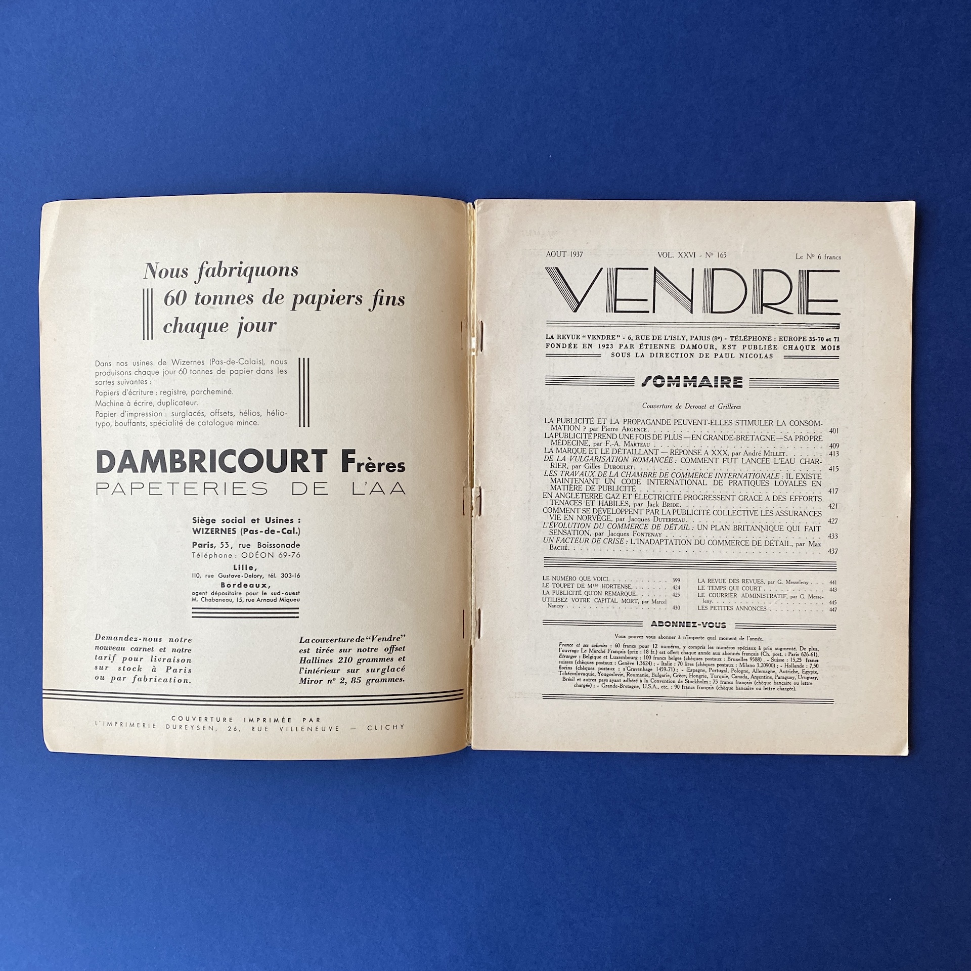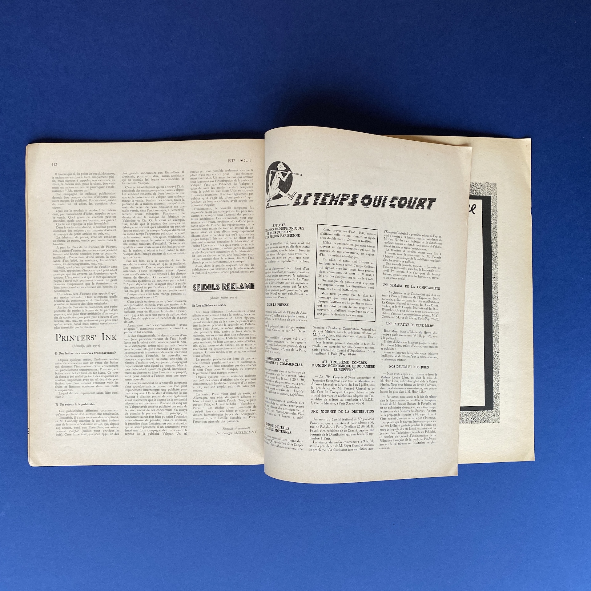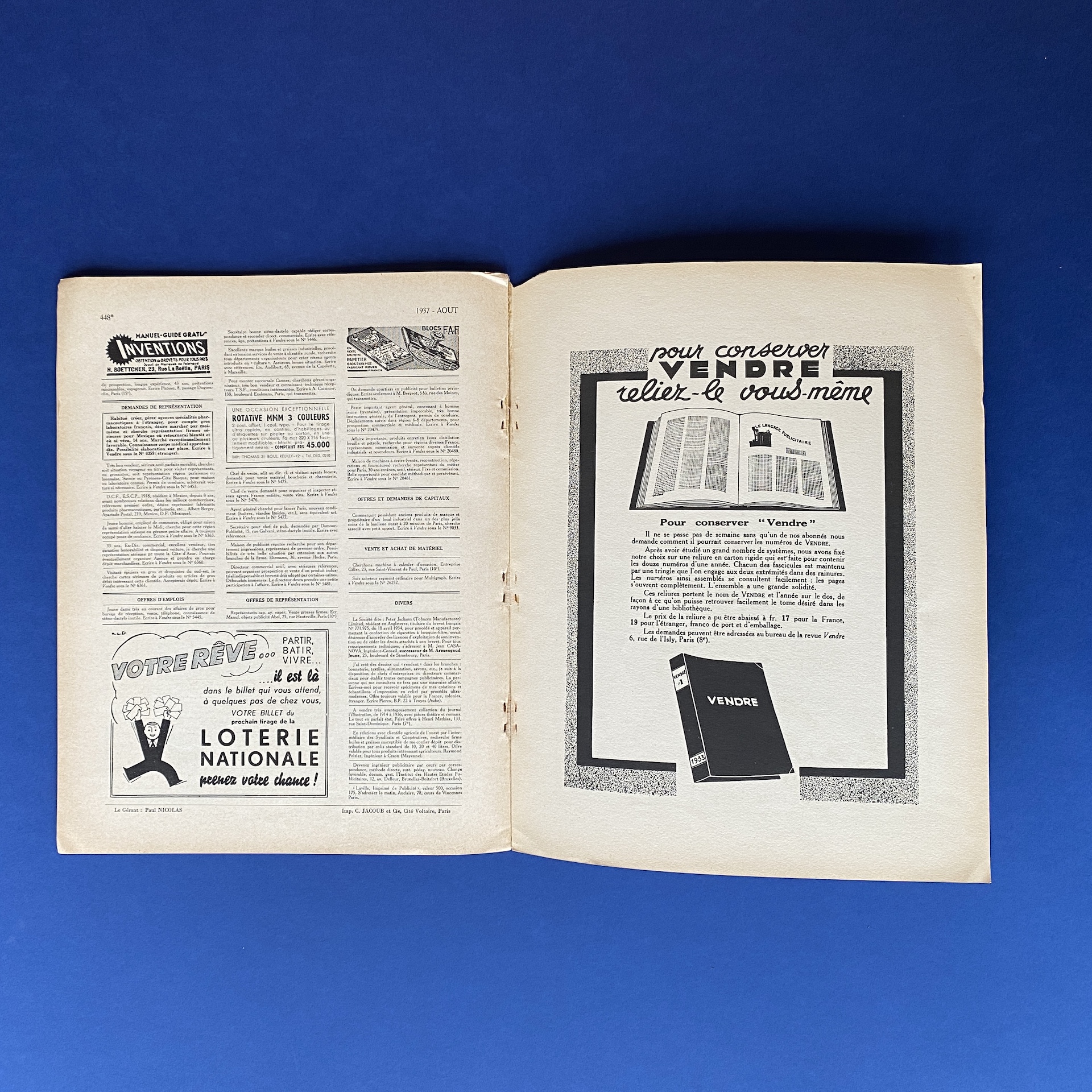 Vendre n°165, 3e congrès mondial de la publicité, Saint-Ouen, Buttner-Thierry Imprimerie, Aug 1937, 23 x 29 cm. In French. Copy in good condition, binding a bit fragile.
