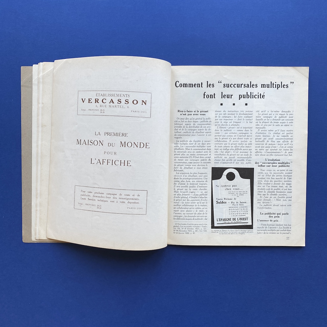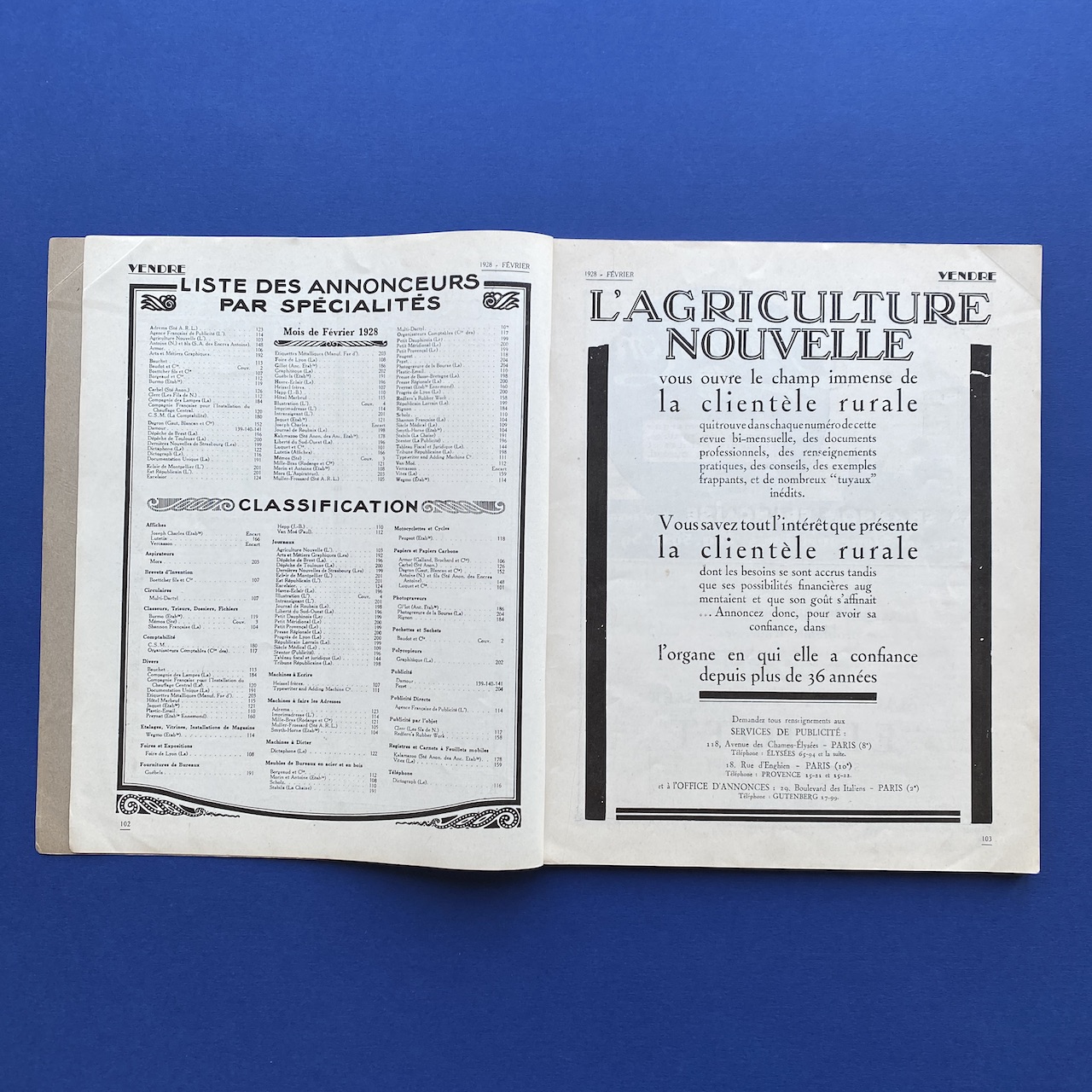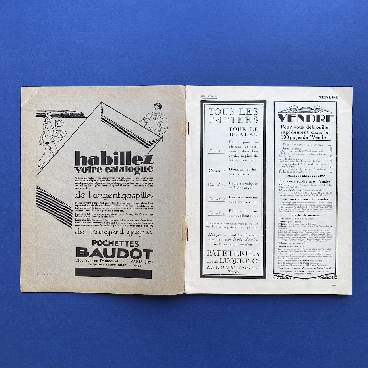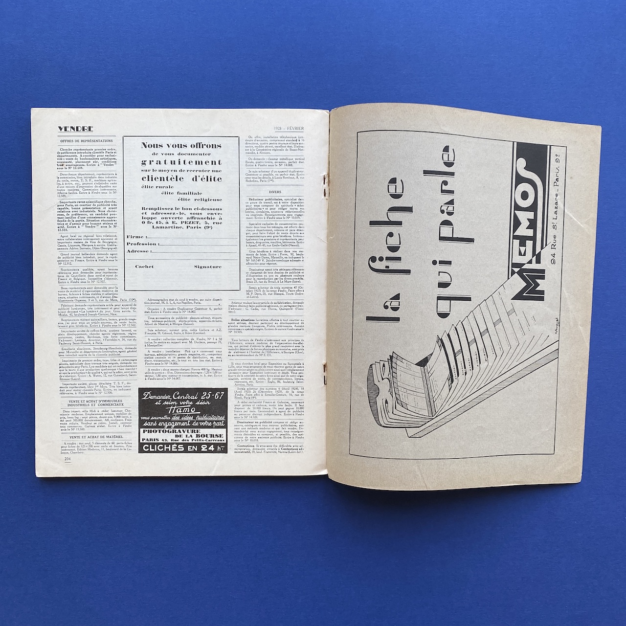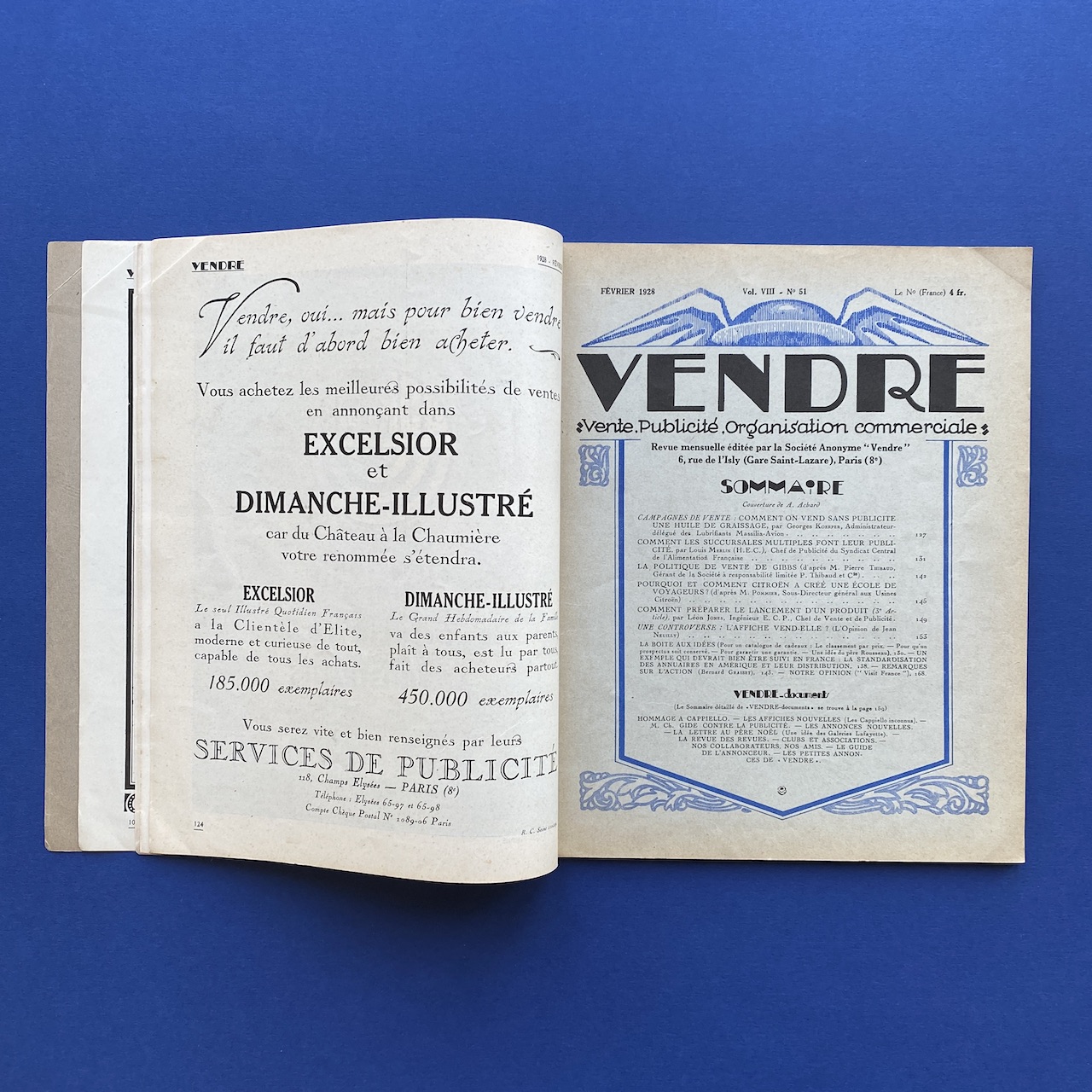 Vendre, nouvelle adresse 6 rue de l’Isly, volume VIII, #51, February 1928, 22 x 27,2 cm, 103 pp. Good condition, interior in very good condition, no tears or marks, binding a bit fragile due to rusty staples. Various illustrations.