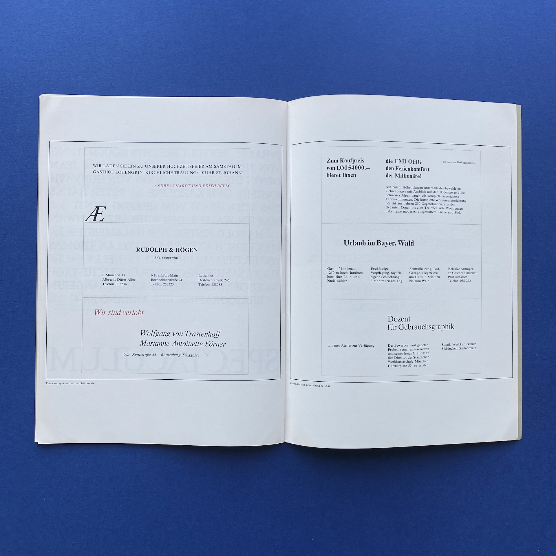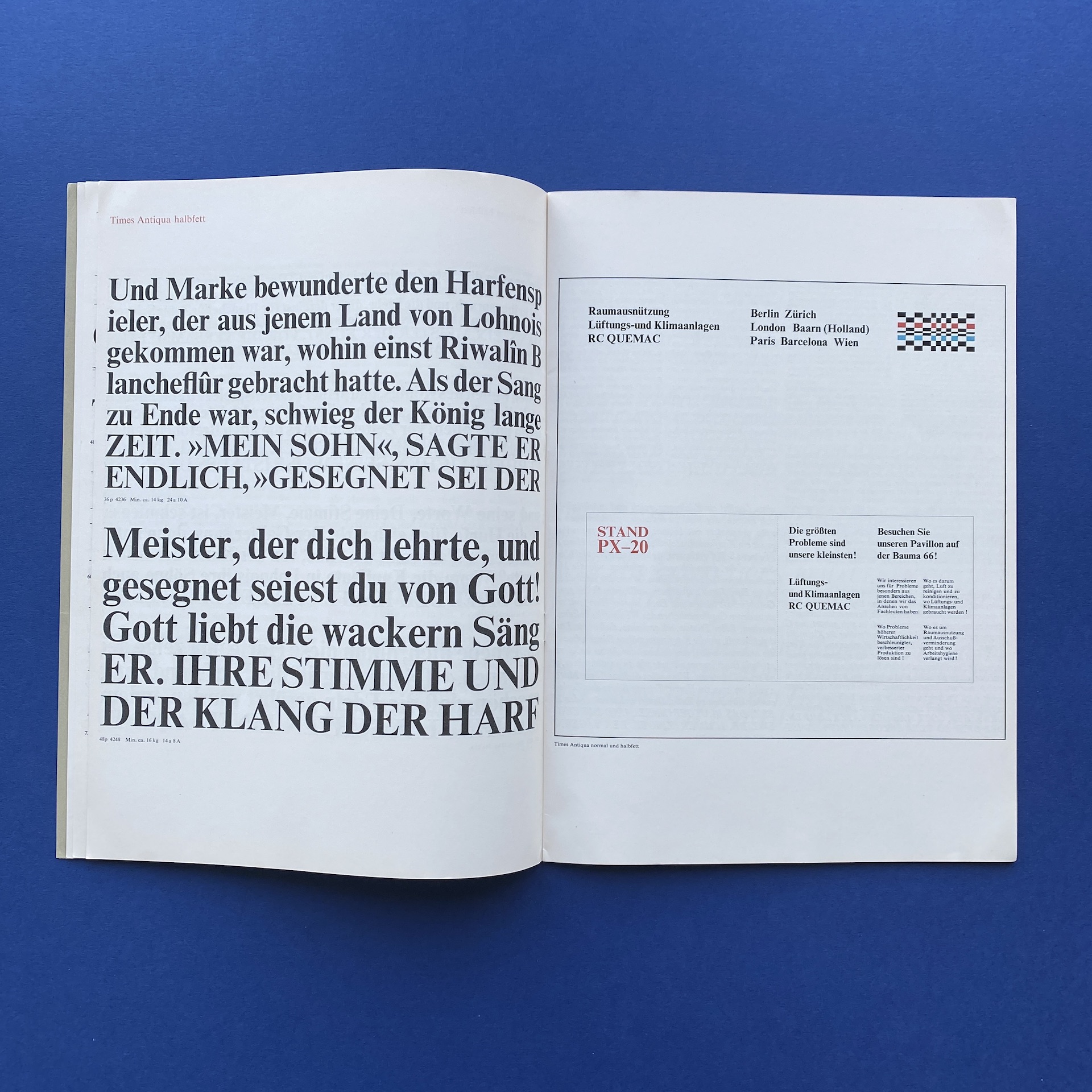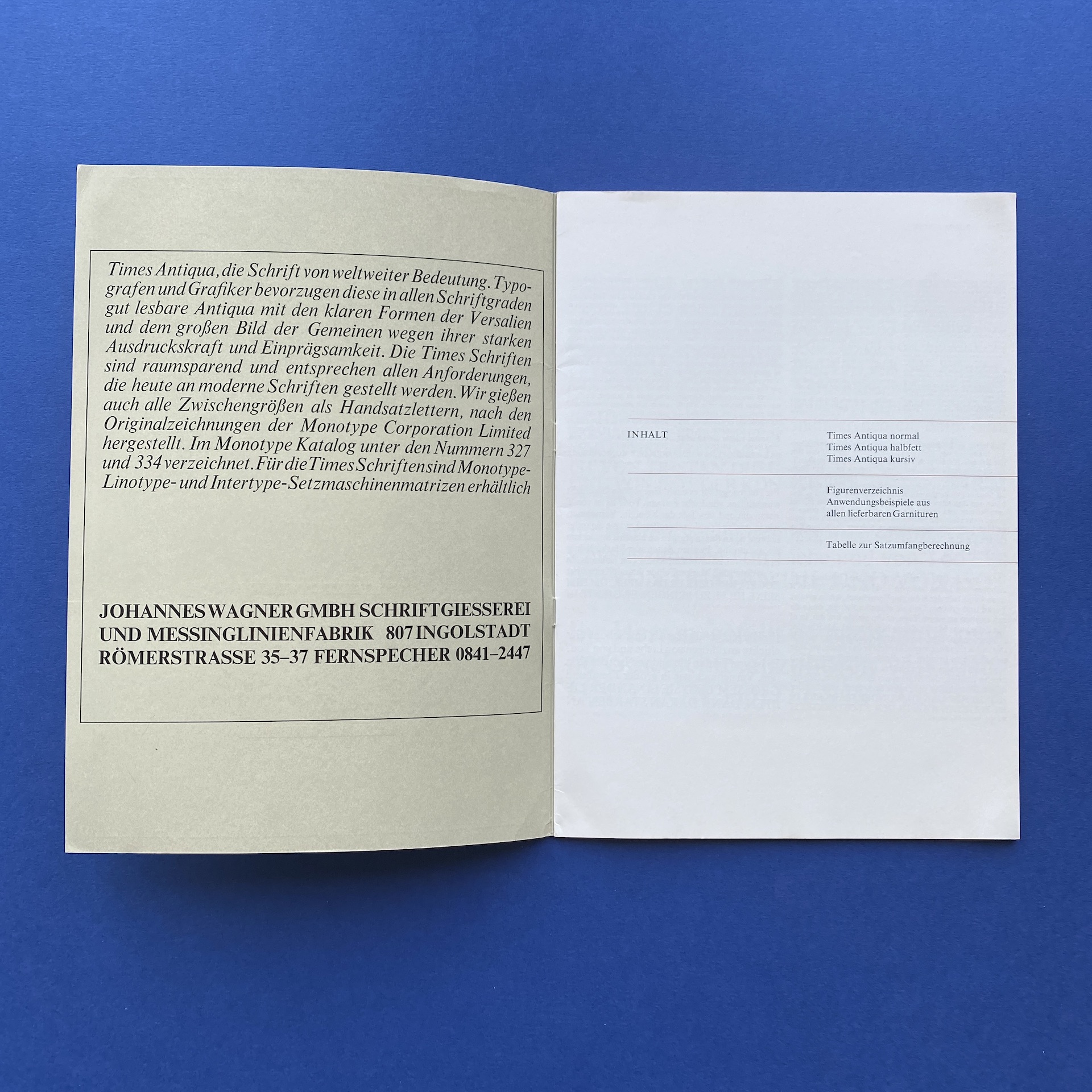 WAGNER GMBH Johannes, Times Antiqua, Germany, n.c., 1960s, 21 x 29,7 cm. Booklet in very good condition.