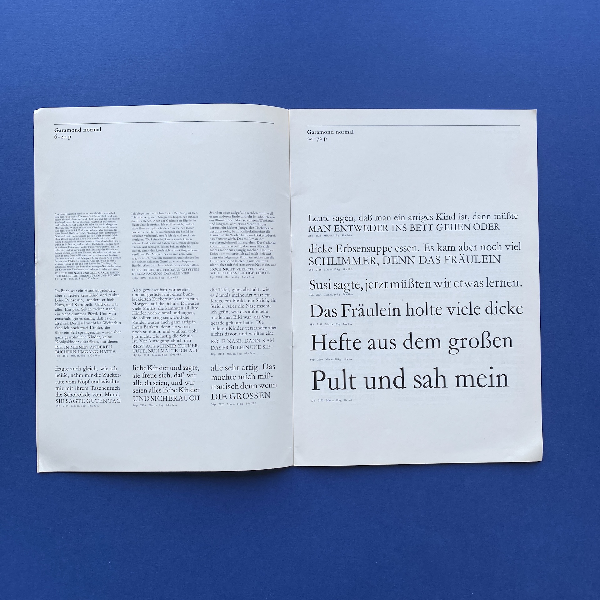 WAGNER Johannes, Garamond Antica, Ingolstadt, Johannes Wagner Type Foundry, 1955, 21 x 29,7, 18 pp. Copy in very good condition.