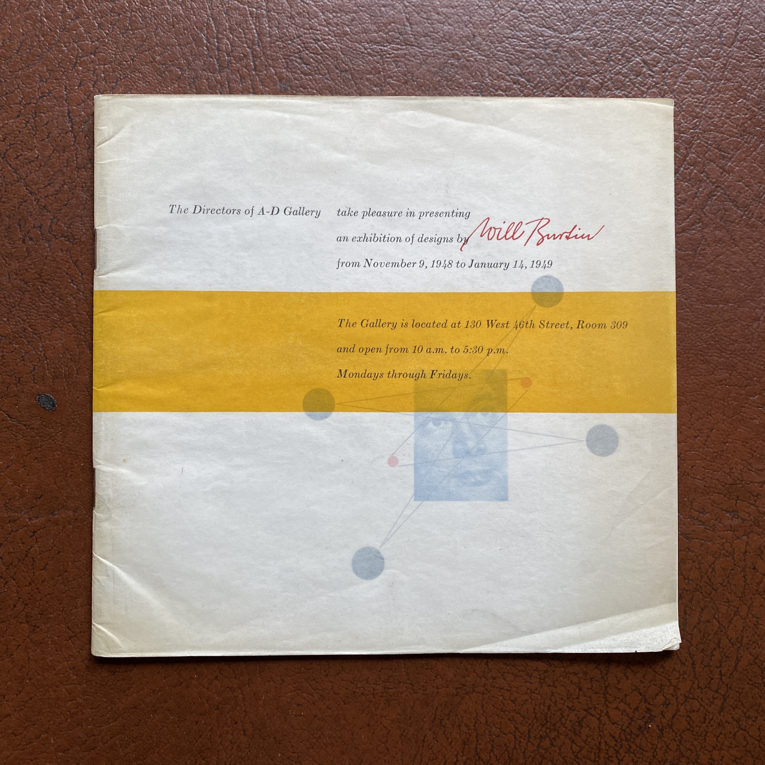 Will Burtin, Integration. The New Discipline in Design, A-D Gallery/ The Composing Room, NY NY, 1948. 17 pp. booklet, 17,5 x 16,6 cm. Cover on crystal paper