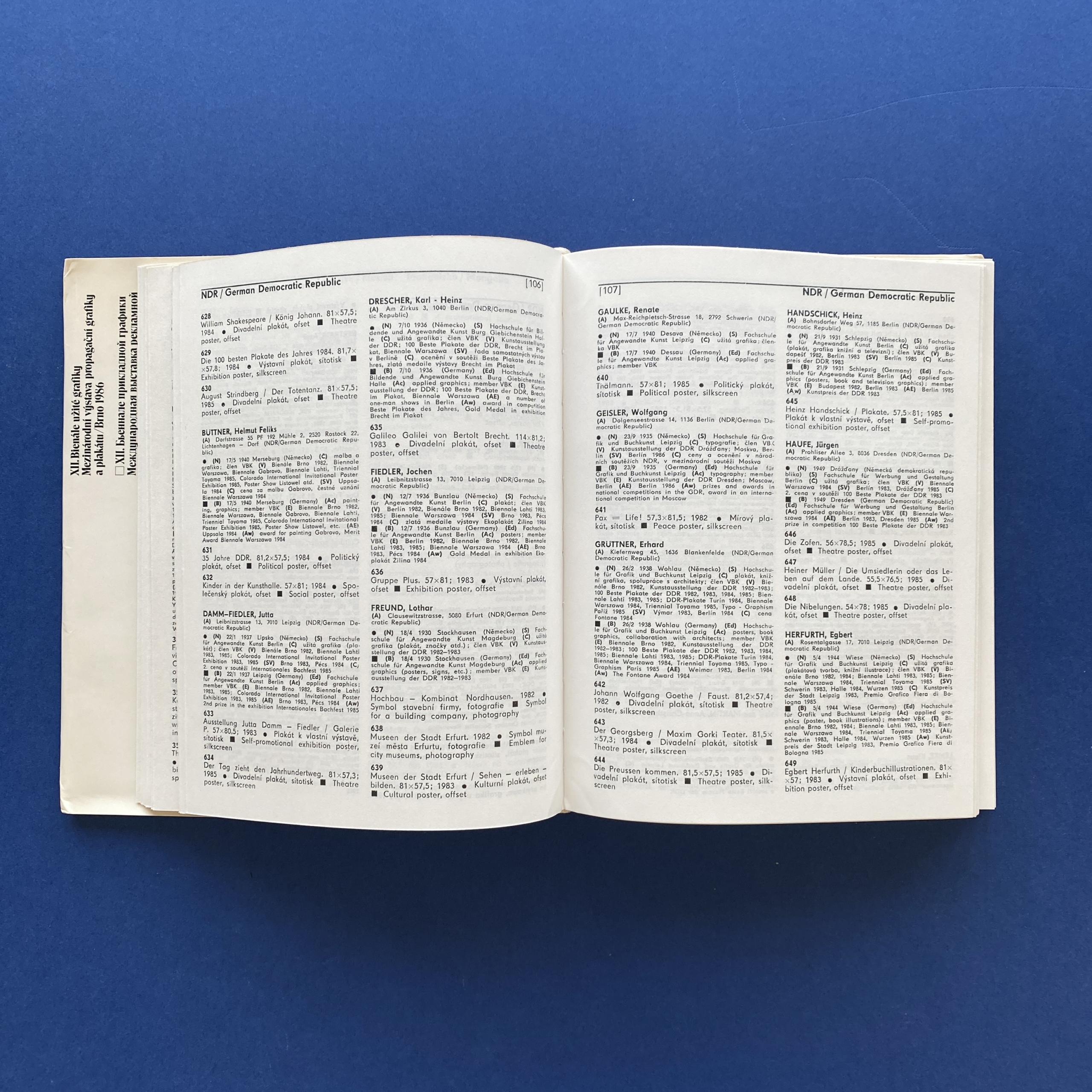XII Bienále Brno 1986, International Exhibition of illustration and Editorial and Art, Moravskà galerie, Brno, 1986, 17 x 21,5 x 3 cm, 376 pp.